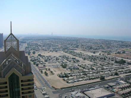 Aussicht von der Terasse im 42. Stock des Shangri-La in Richtung Abu-Dhabi
