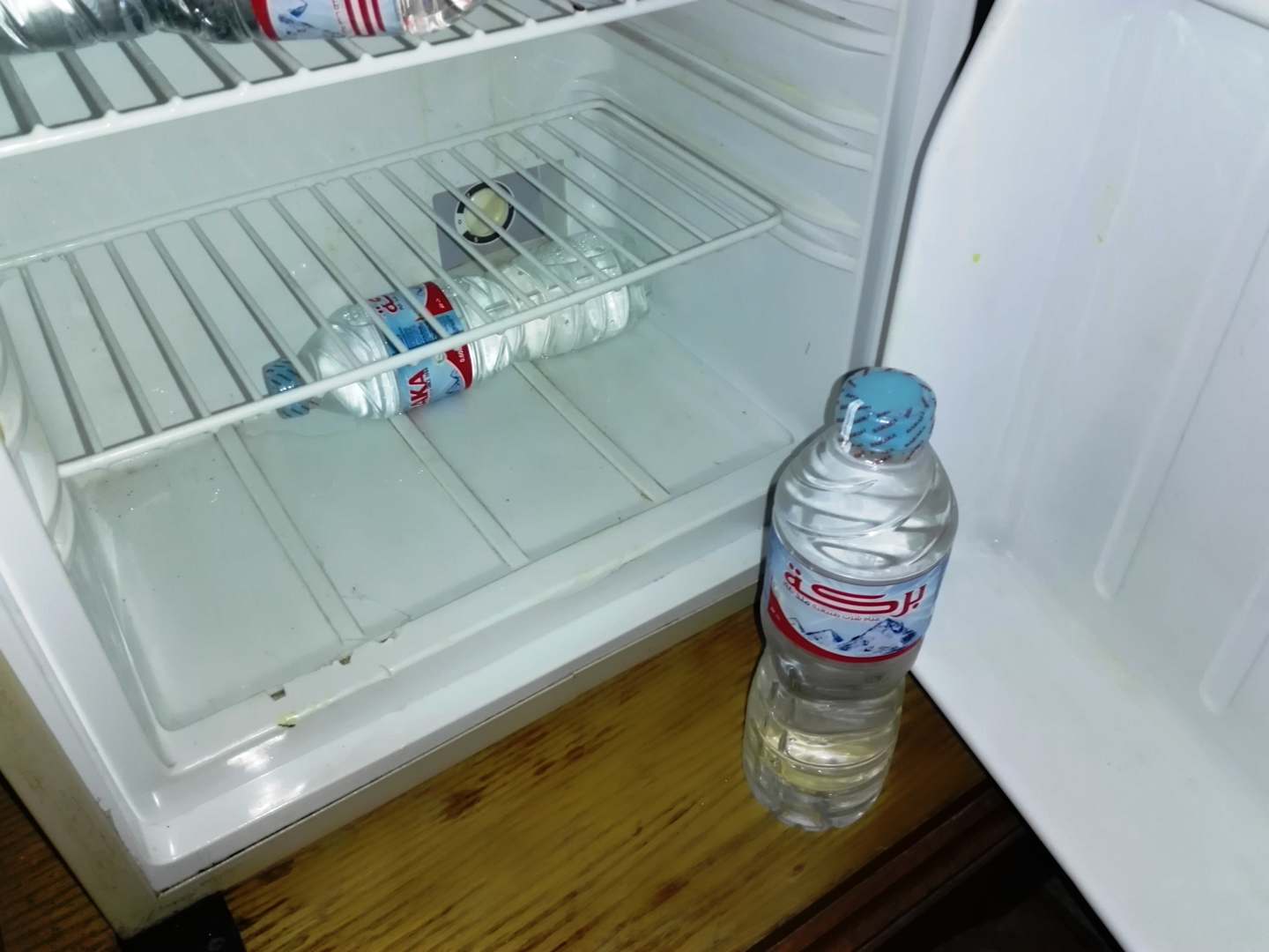 Schmutziger Kühlschrank auf dem Zimmer