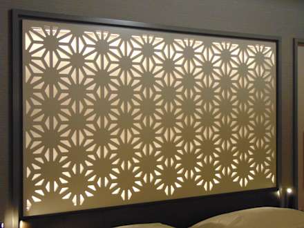 Indirekt beleuchtbare Reliefwand hinter dem Bett!
