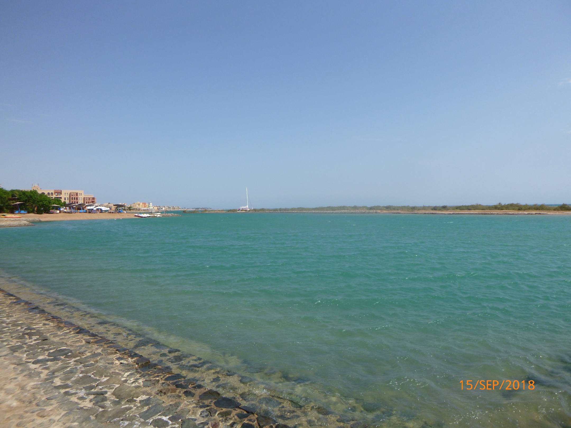 hinten rechts liegt der Familien Strand für die Kinder ist was zum Klettern und Buddeln da