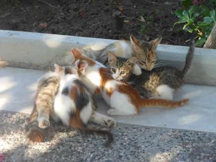 Eine Katzenfamilie die in der Hotelanlage lebt