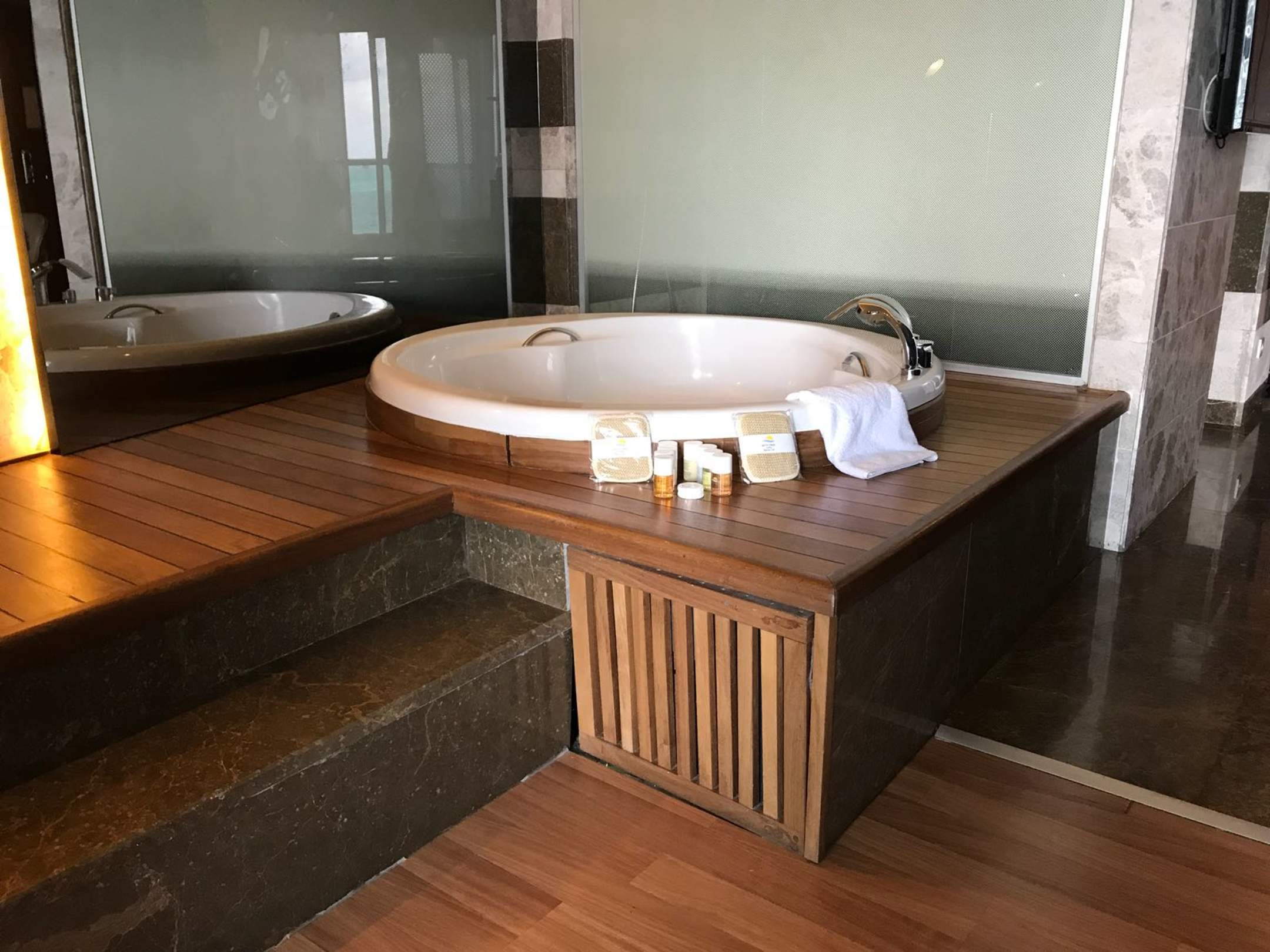 Ausblick vom Bett auf den Whirlpool