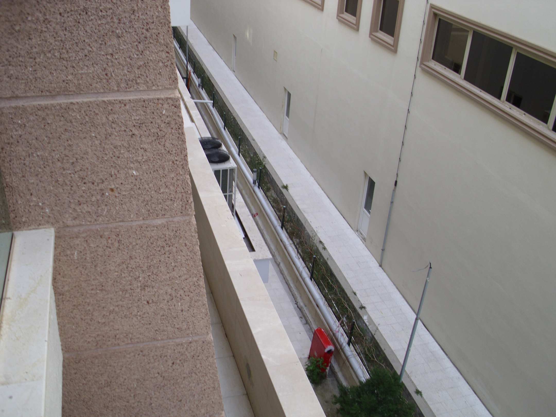 Ausblick vom Balkon ...... eigentlich nur für Technik-Liebhaber. Und die Kompressoren quietschen auch noch. Die ganze lange Ostseite des Sherwood hat einen solchen und ähnlichen Ausblick.