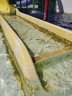 Wer will das noch rutschen? Die Rutschen im Aquapark sind total schmutzig.