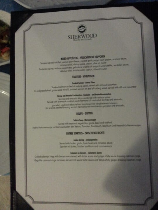 Speisekarte Themenrestaurant Meeresfrüchte