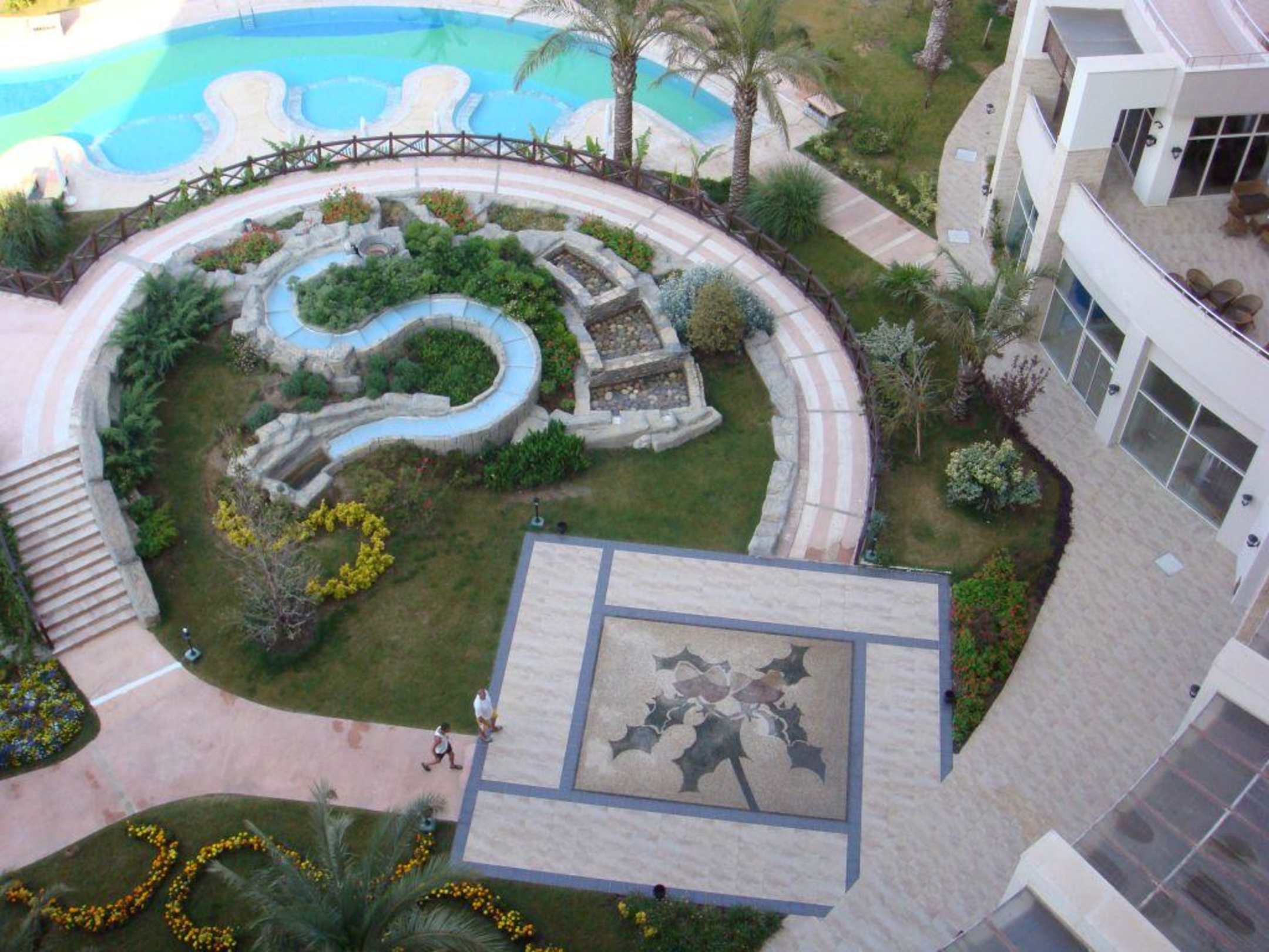 blik op buitenterras/zwembad