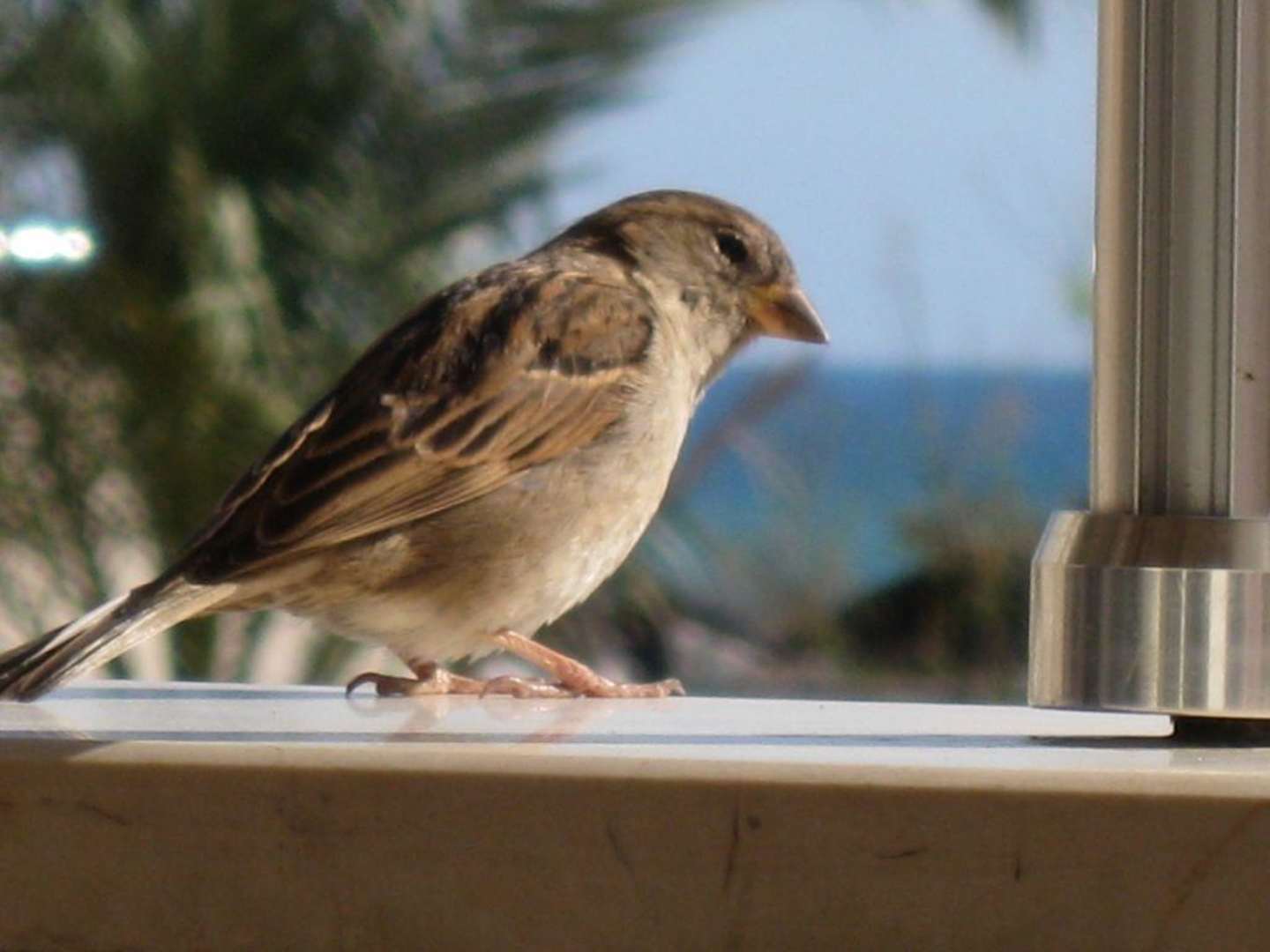 ein Spatz/ Sperlingbeim Frühstück darf man seinen Teller nicht unbeaufischtigt lassen, sonst sitzen die Spatzen mitten im Essen