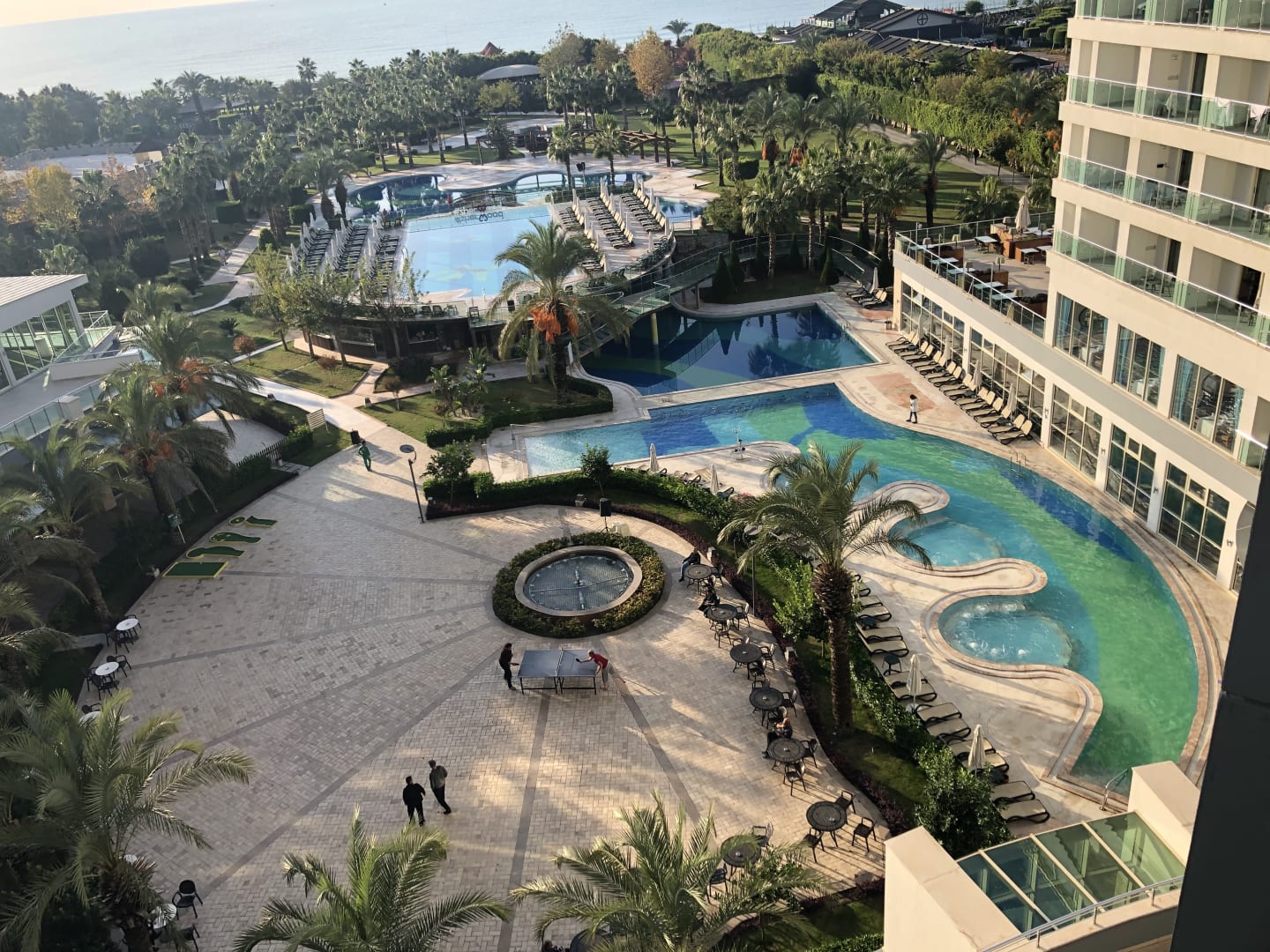 Aussicht vom Balkon auf den beheizten Außenpool!