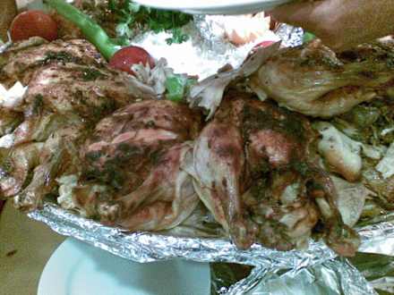 An einem Abend gab es gebratene Hähnchen. Lecker!