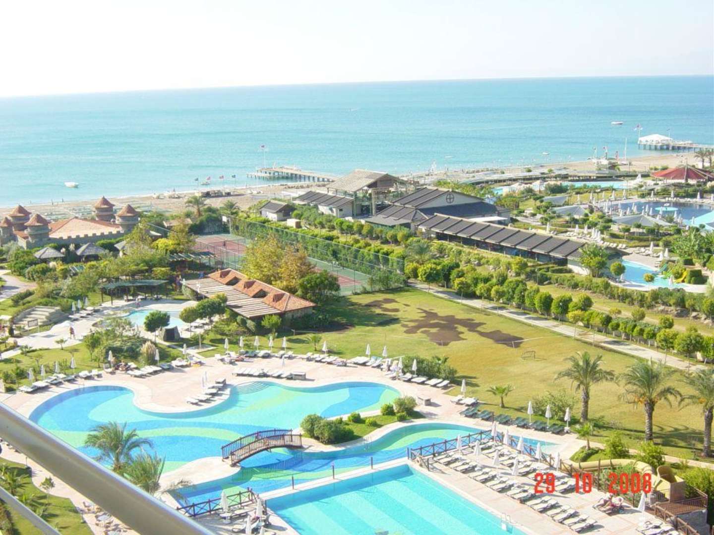 Poollandschaft vom Hotelzimmer aus gesehen
