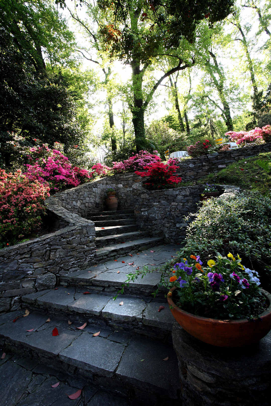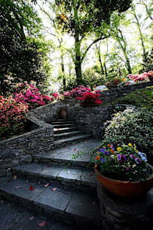 La magnifica scalinata fiorita che conduce al parc
