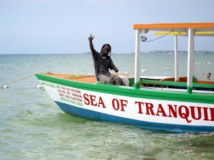 Skipper Charly gehört quasi zum Hotel. Angebot 2 h schnorcheln (incl. Ausrüst.) z.Zt. 30 US$, 3,5 h Sonnenuntergang (incl. Getränk) 50 $, 3 h Flussfahrt 30 $.