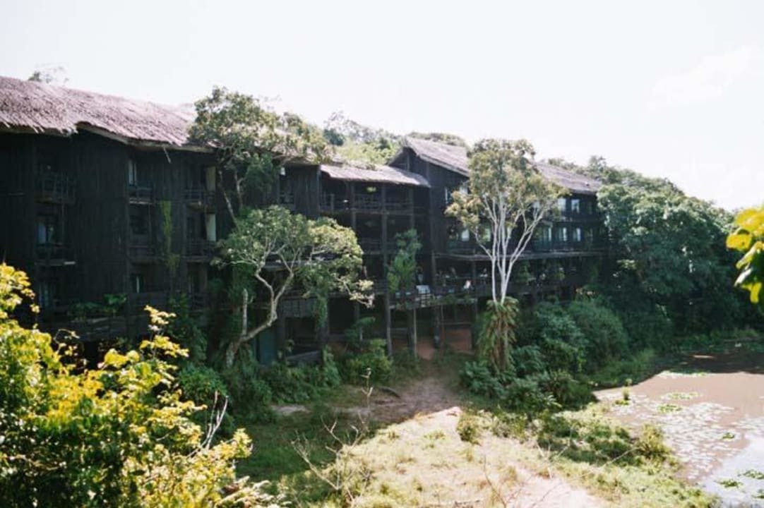 Etwas außerhalb der Shimba Hills liegt die traumhafte Shimba Rainforest Lodge. Die gesamte Anlage ist auf Holzpfählen gebaut und man hat einen wunderschönen Ausblick auf das große Wasserloch. Mombasa, Diani Beach, Südküste.