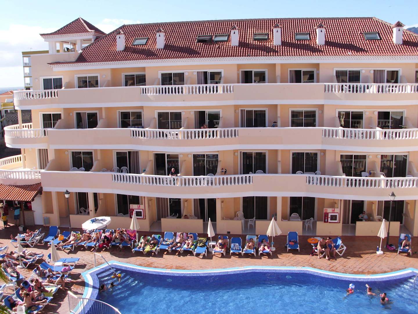 Blick auf den Pool und auf Hotel
