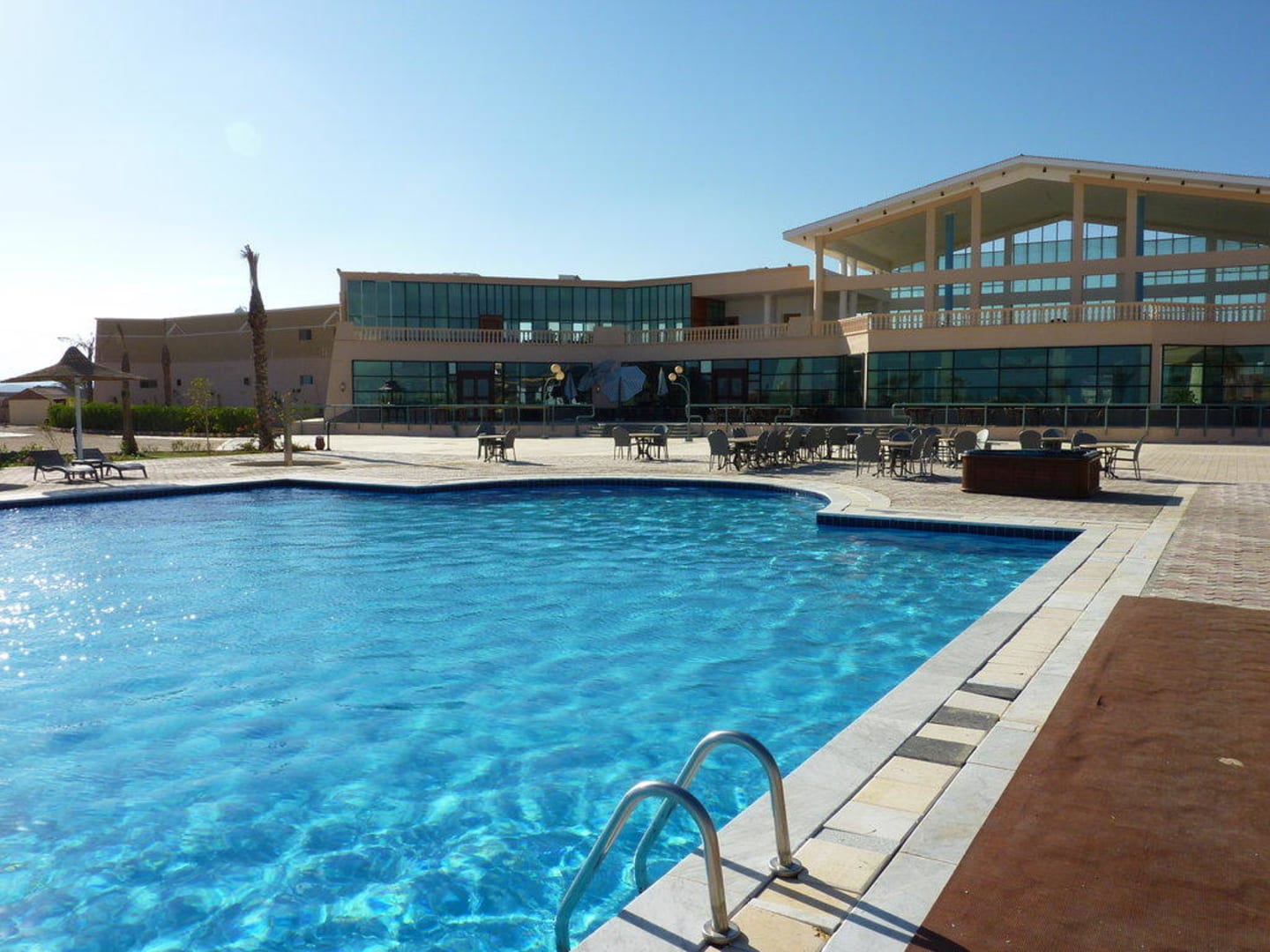 Pool & Haupthaus mit Restaurant