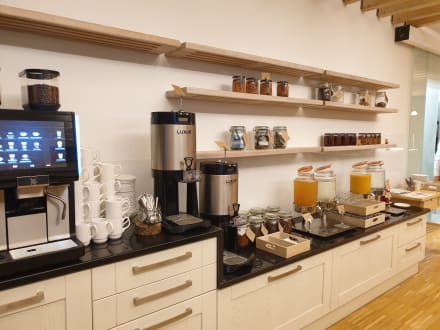 Frühstück mit frischen Kaffee, Säften usw.