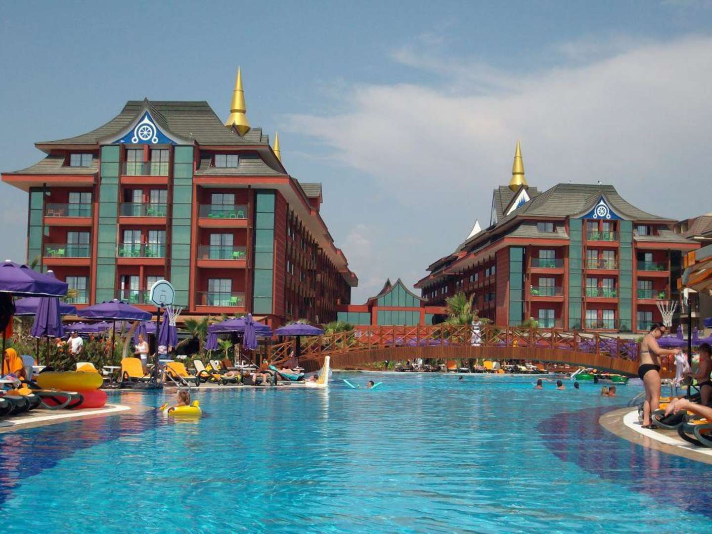 Im Hintergrund Hotelanlage