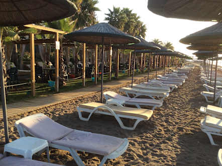 Aussicht morgens um 8 Uhr . Freie Auswahl an Liegen .