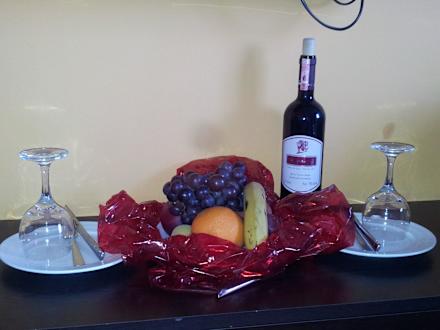 Diesen Obstteller und eine Flasche Wein gabs als Geburtstagsgruß aufs Zimmer!