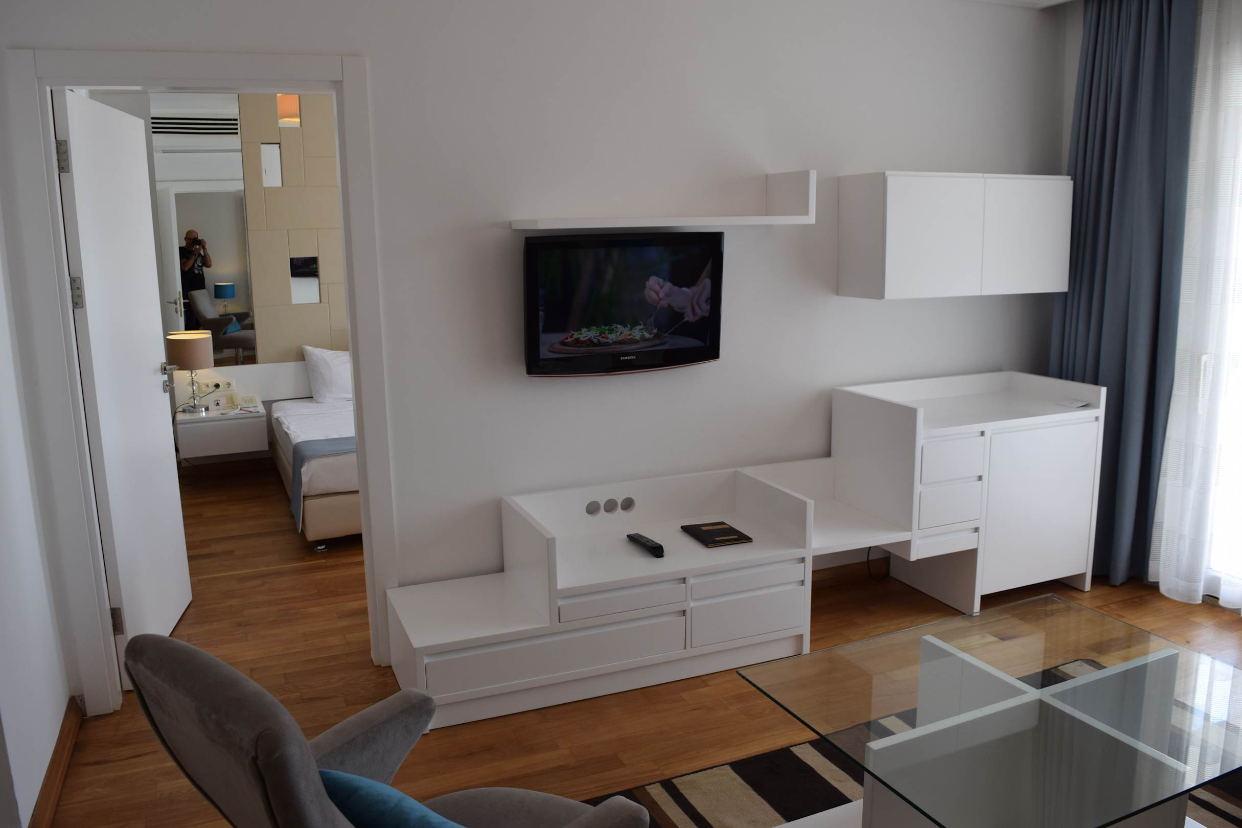 Wohnzimmer. Schrank und TV-Gerät.