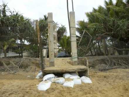 Sandsäcke werden als Treppe benutzt. Kein vergleich zu Internet oder Prospekt. Muss laut Aussage auch vor 3 Jahren noch ganz anders ausgesehen haben. Ein Gast war das zweite mal da war diesmal aber auch total enttäuscht.