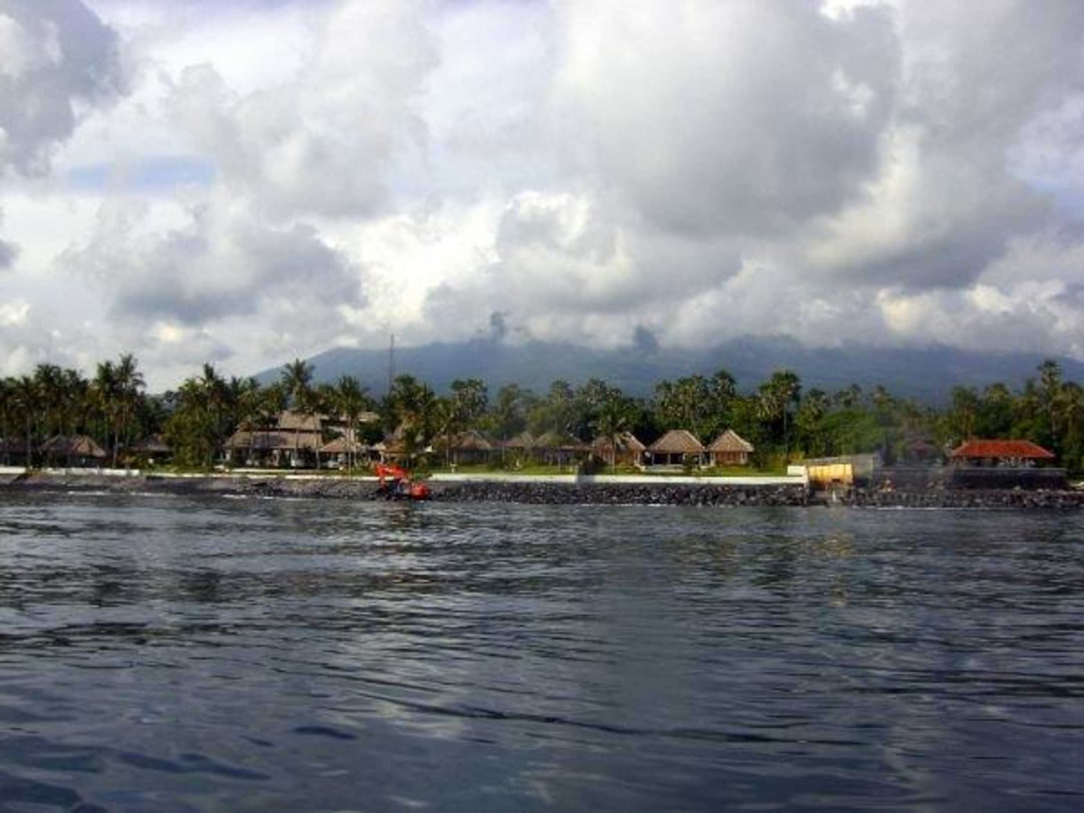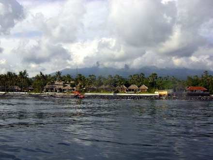 Im Hintergrund der Mt.Agung. Man beachte den roten Bagger...