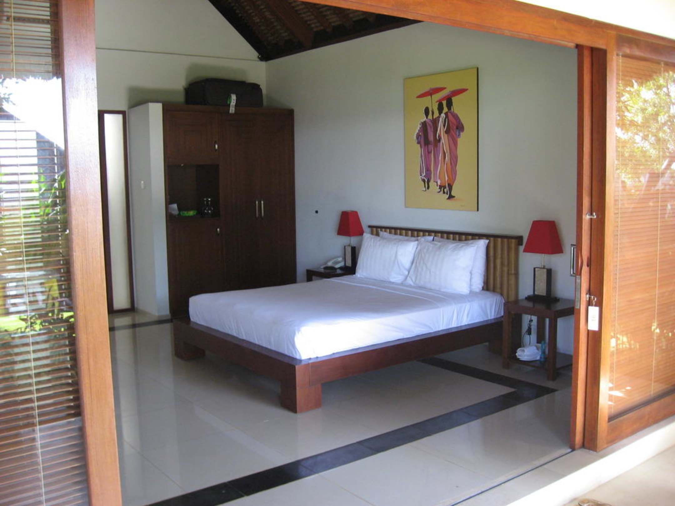 Blick von der Terrasse auf das Doppelbett