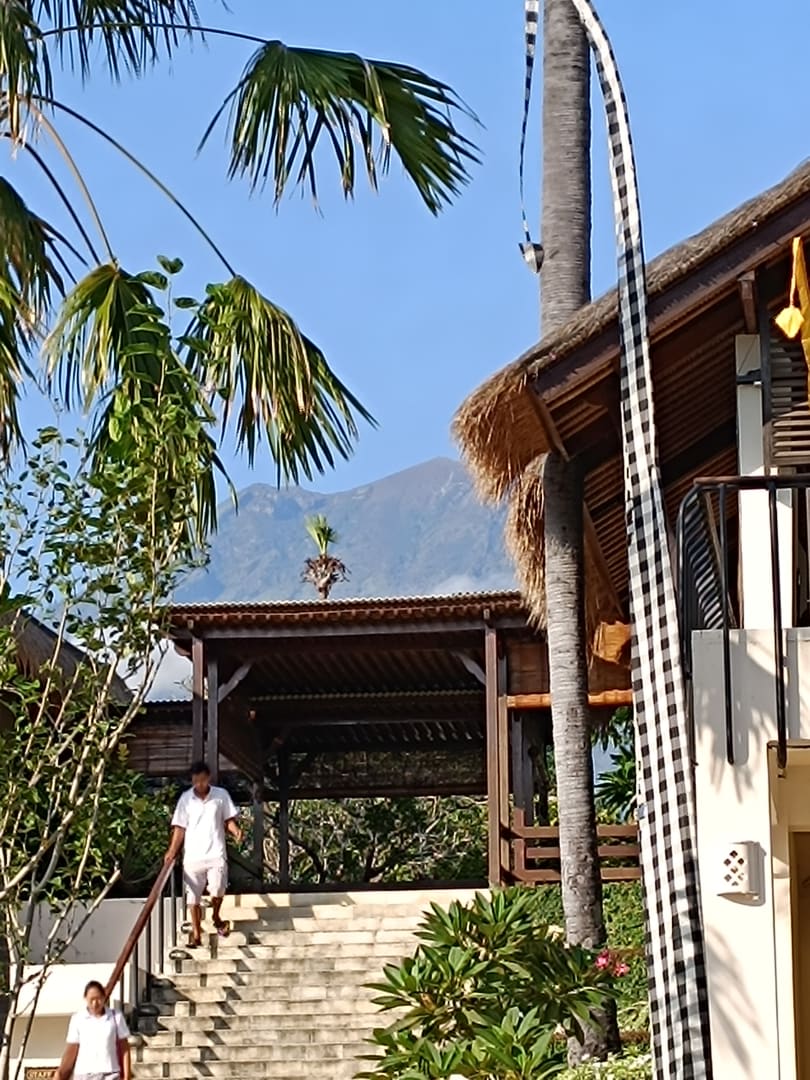 Treppe zur Rezeption mit Blick zum Vulkan