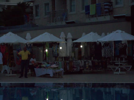 Verkaufsstände um den Pool