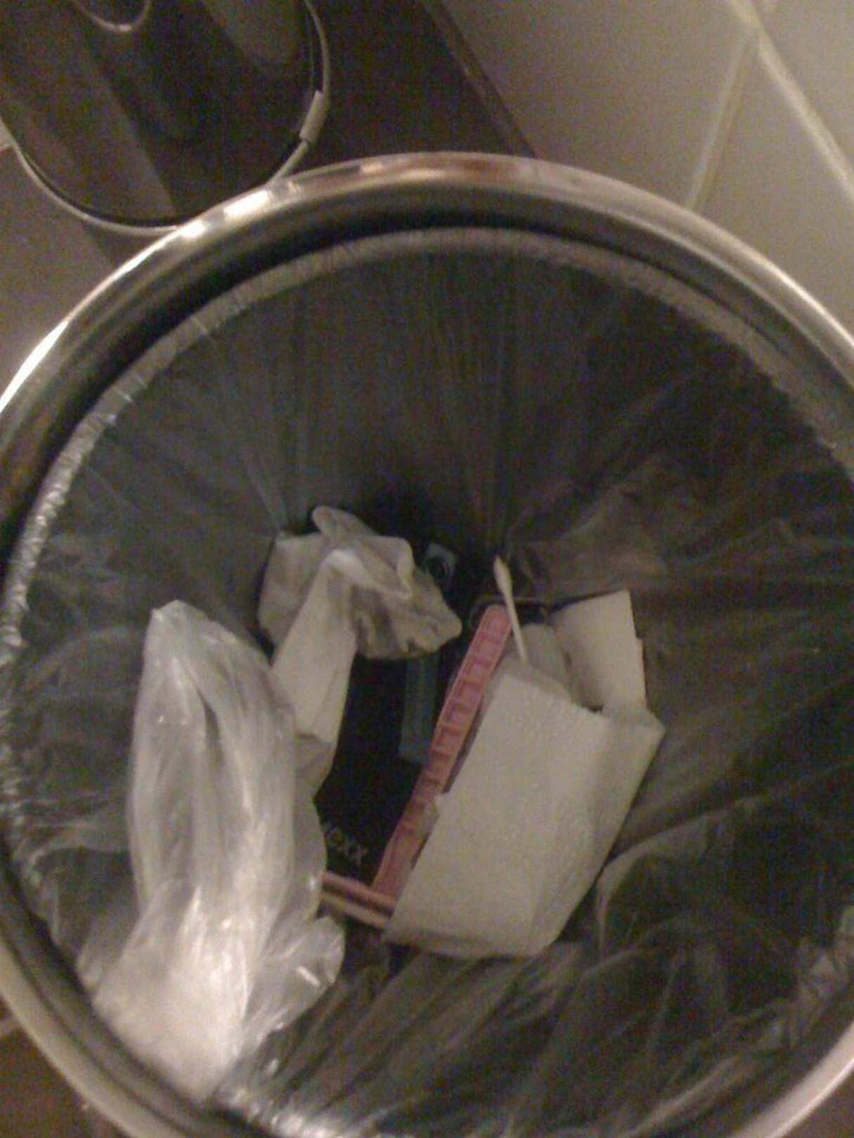 Begrüßungsgeschenk Statt Wasser in der Minibar gab es einen gefüllten Mülleimer im Bad