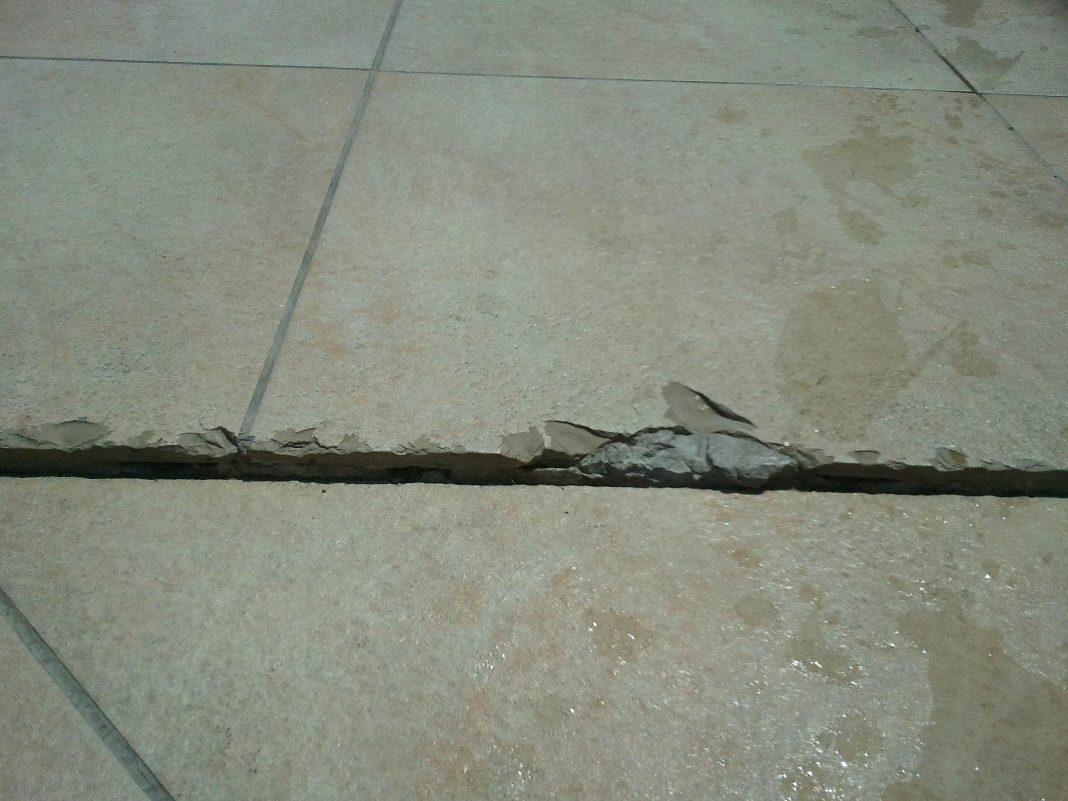 Vorsicht defekte Fliesen, scharfe Kanten