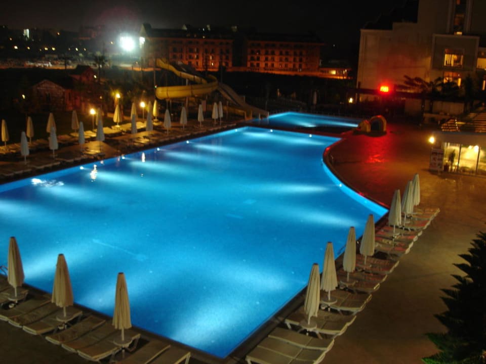 Der Pool am Abend mit Beleuchtung