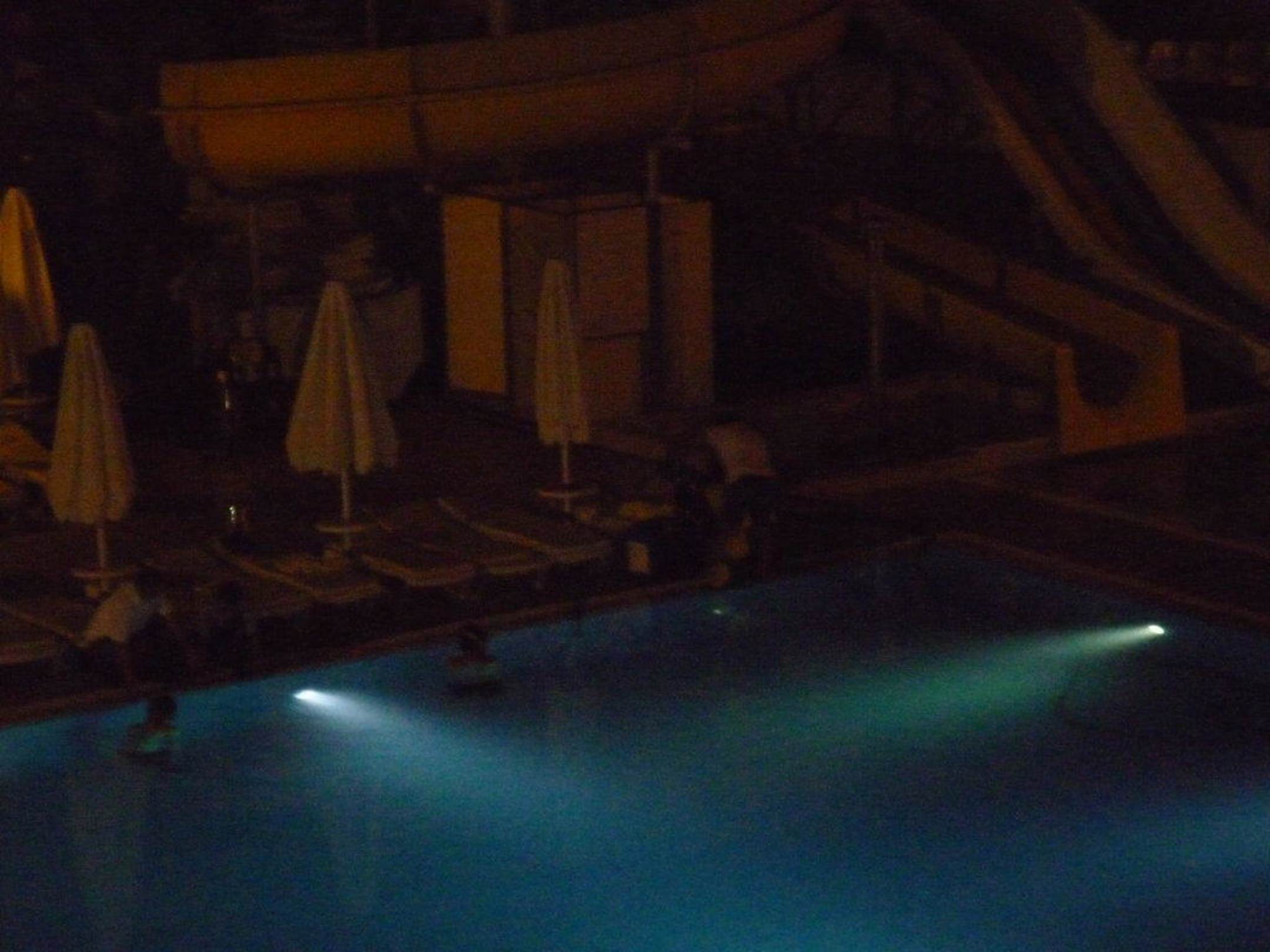 PoolreinigungWenn man das Bild größer macht erkennt man deutlich die Fässer mit Chemie und den Dampfstrahler rechts und die Menschen im Wasser