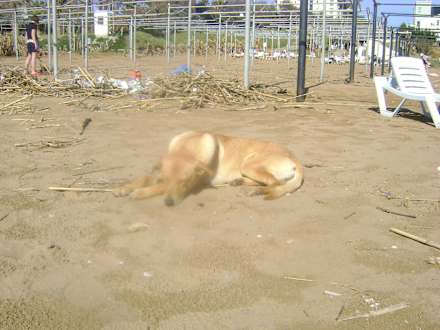 Runtergekommen!Leider sah der Strand die ganzen 14 Tage so vermüllt aus.Aber die Hunde (ca.10) waren alle freundlich!!!