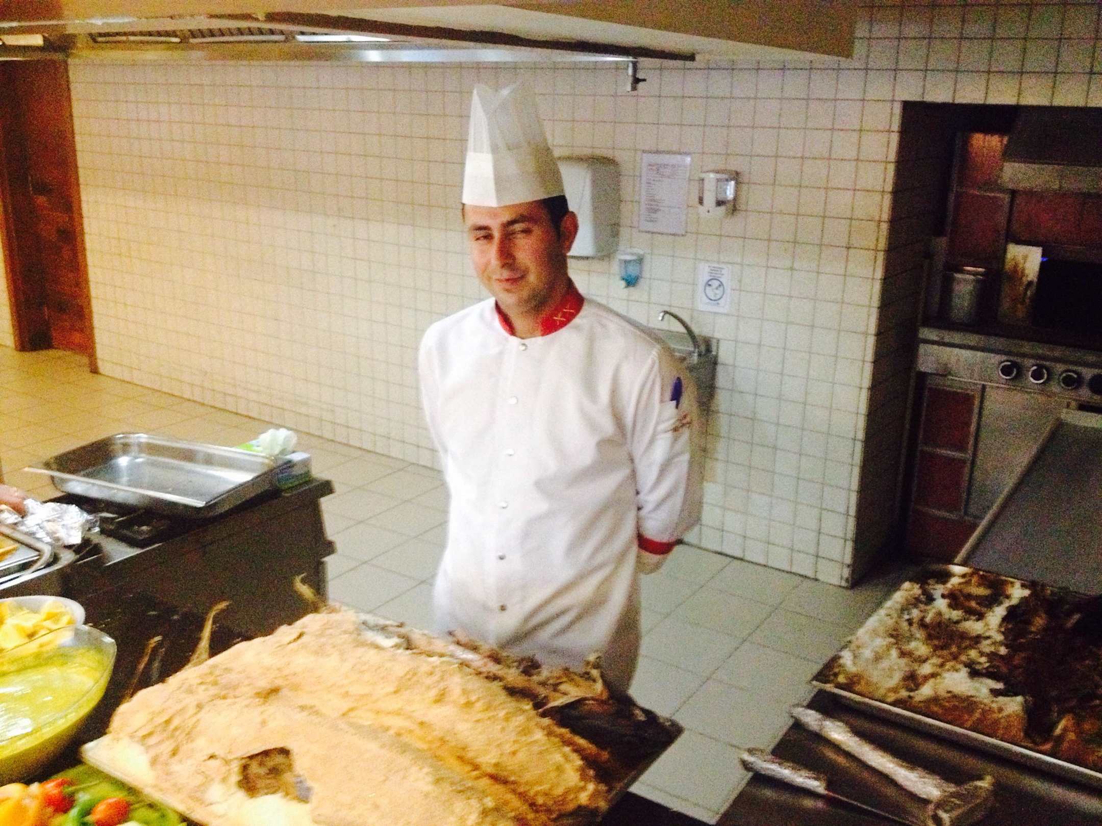 Restaurant mit Koch und frischen Thunfisch