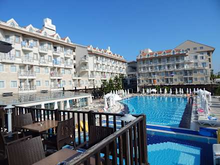 Liebenswertes Diamond BeachDas ist die Ansicht vom Pool aus. Das Hotel ist auf kompakten Raum erbaut.