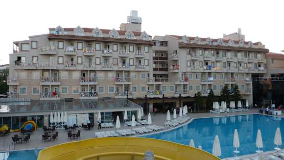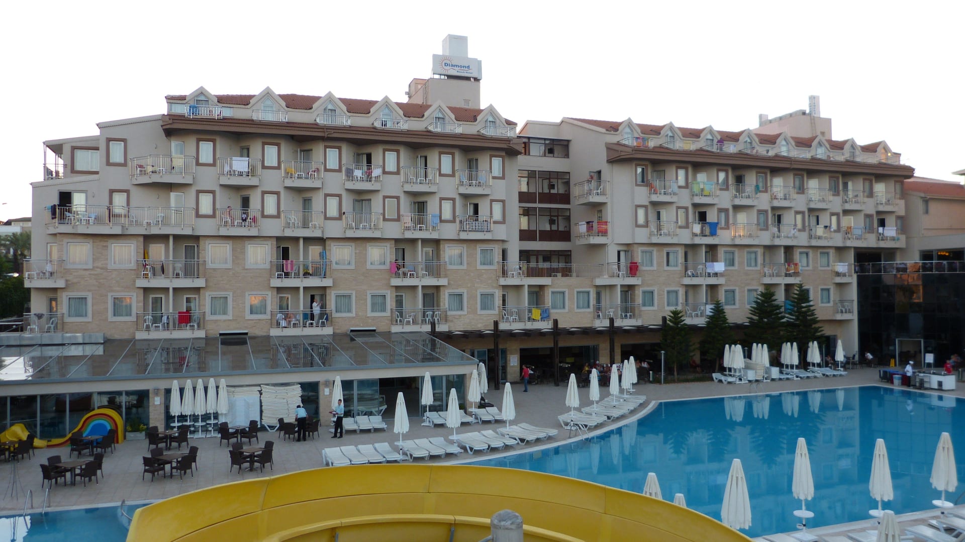 Blick von der Rutsche zum Hotel