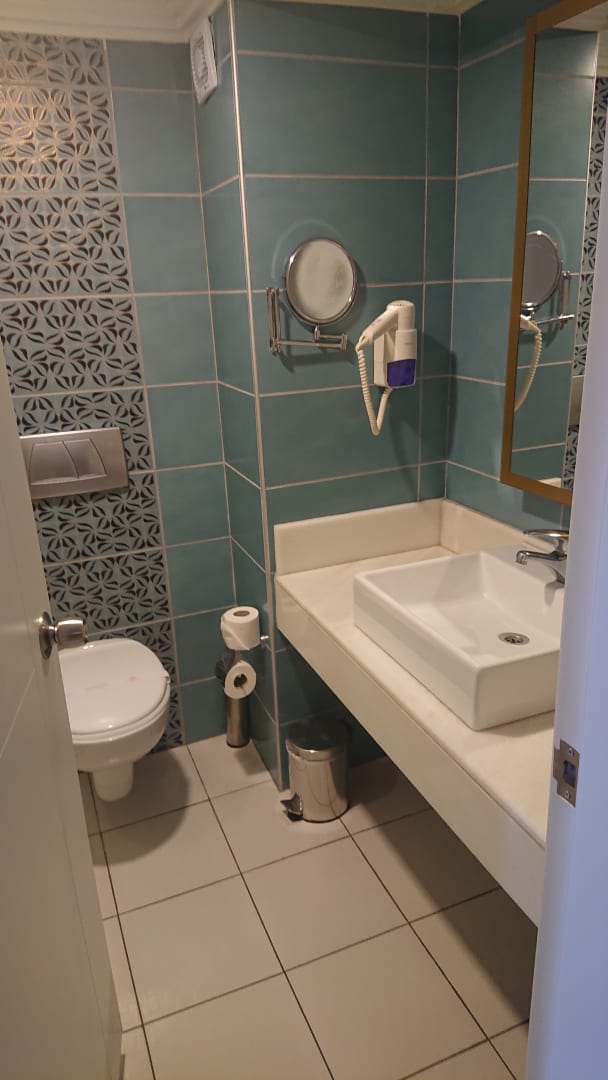 ZimmerBlick ins Bad. klein aber kürzlich renoviert und mit begehbarer Dusche (ohne Klettern in Badewanne)