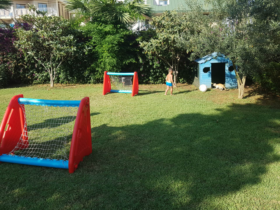 Rasenfläche und Katzenhaus