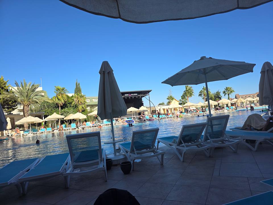 Ansicht vom Pool Richtung Bühne