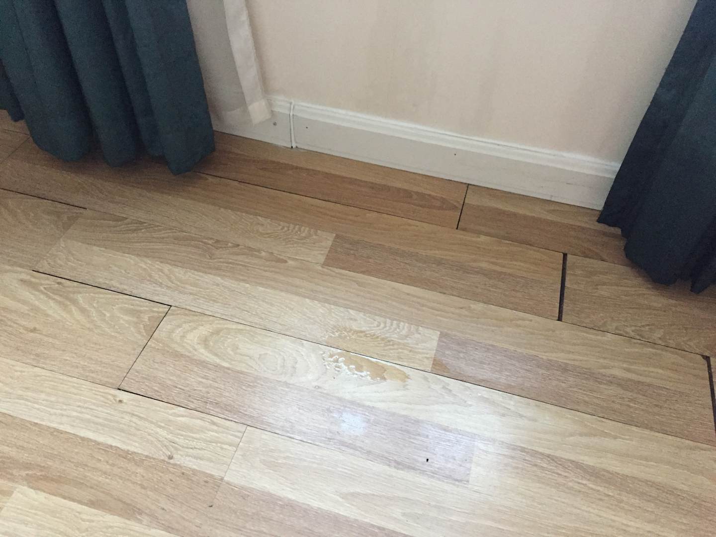 ZimmerKaum zu erkennen aber es hat sixh so langsam eine Pfitze gebildet im zimmer , das Laminat ist schon durch die Nässe verschoben .