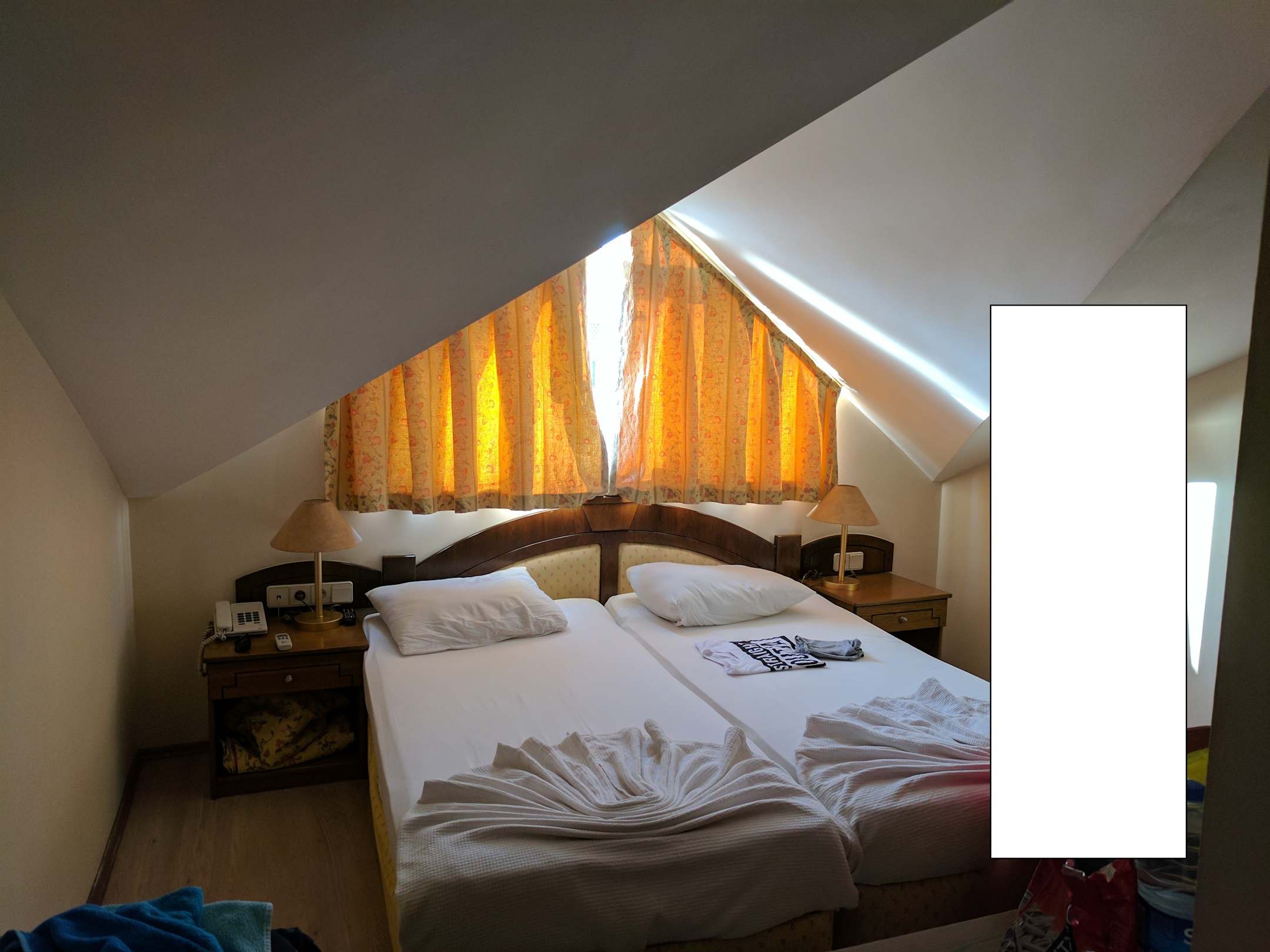Sehr kleines Zimmer mit Dachschrägen und ohne Balkon.