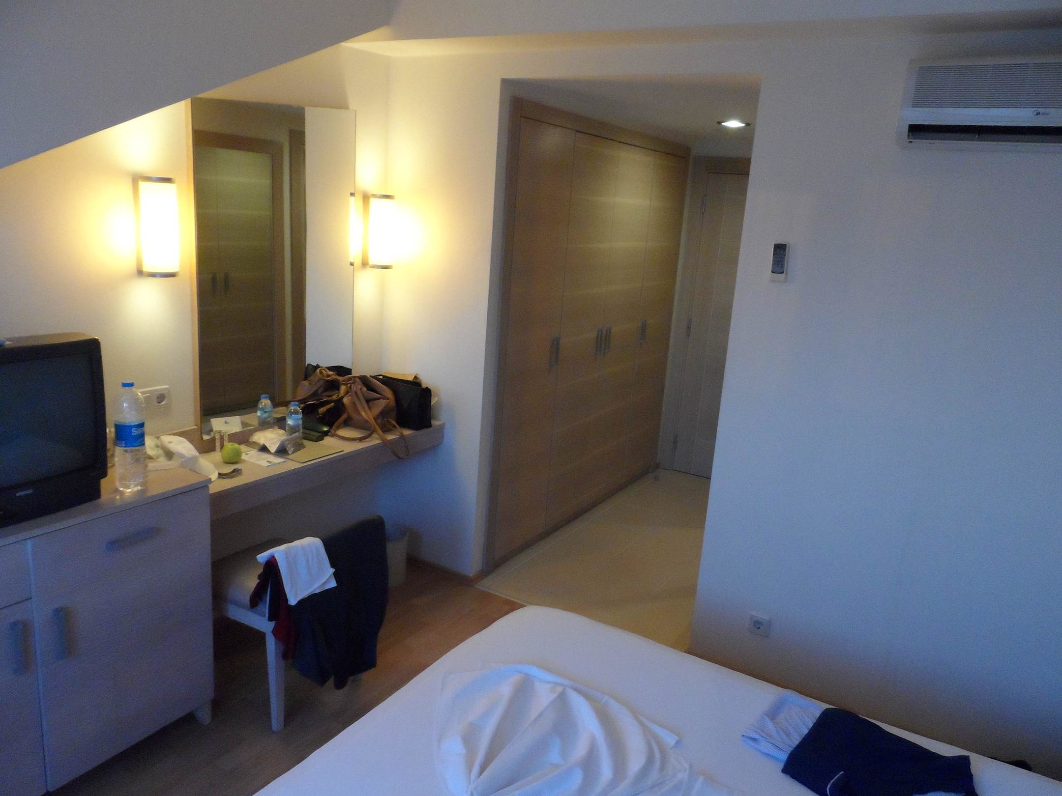 Blick zum Spiegeltisch und Wandschrank