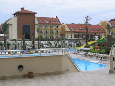 Aussicht auf die Poollandschaft