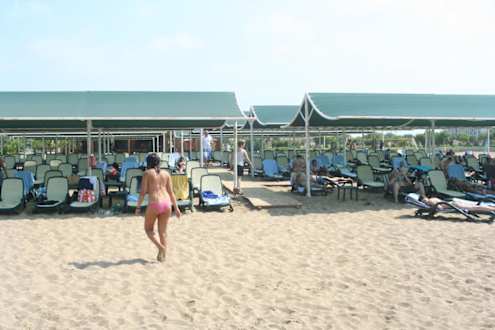 Blick auf die Liegen am Strand