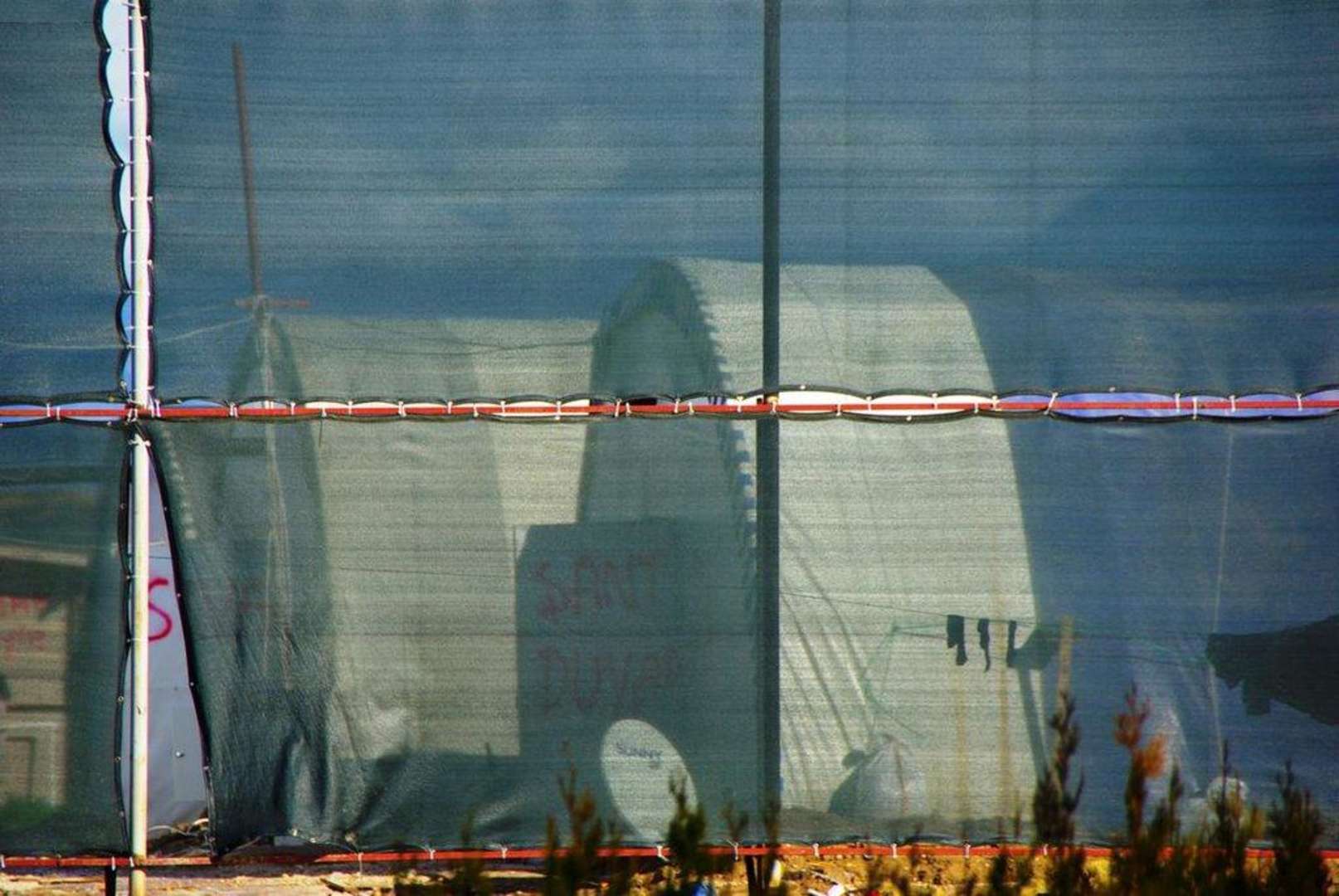 Vor dem Hotel für die Bauarbeiter