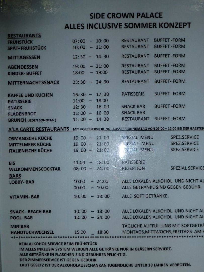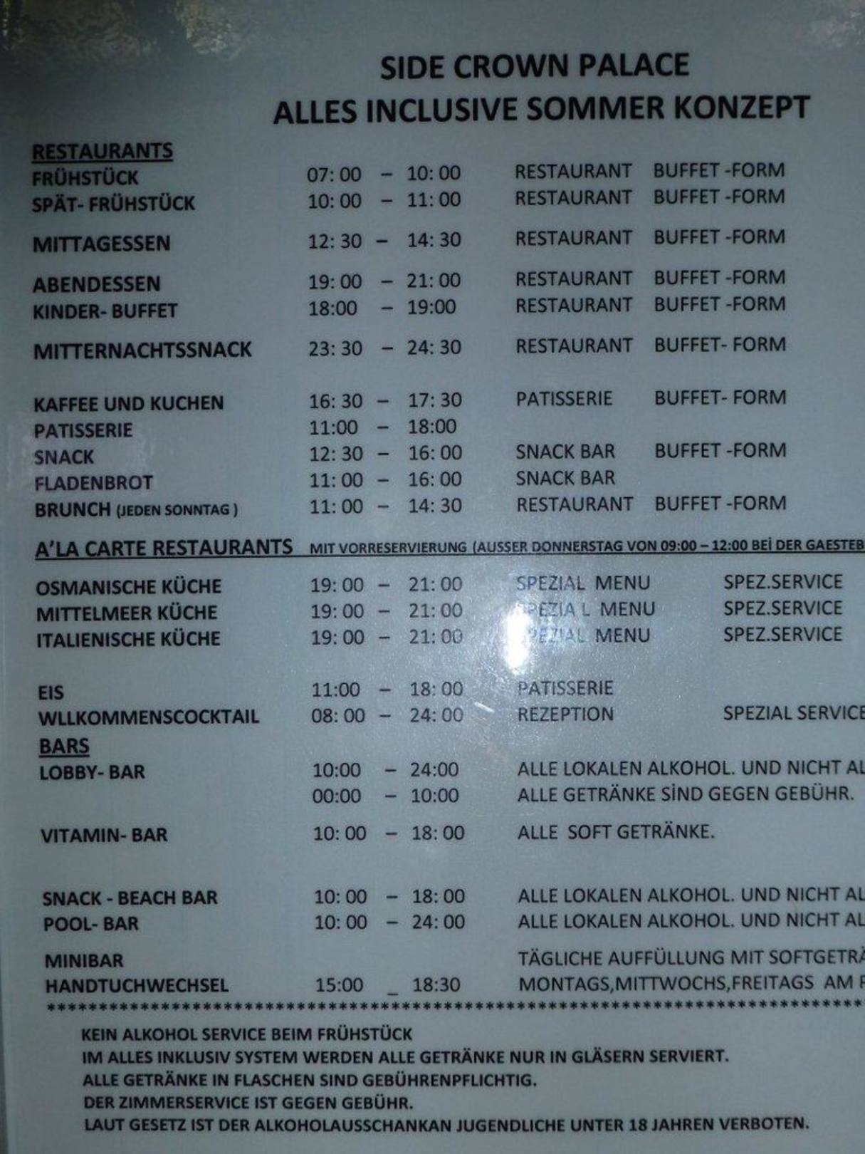 Öffnungszeiten Restaurants & Bars