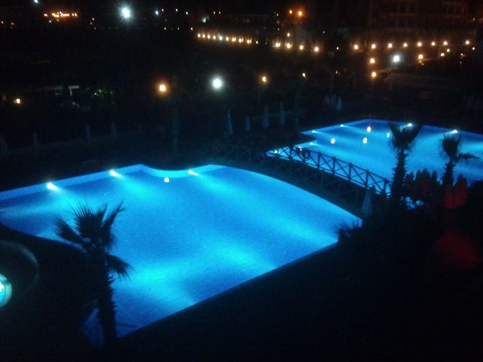 Poolbereich bei Nacht