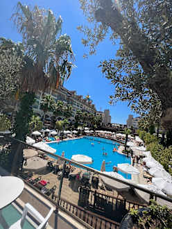 Blick zum Pool, wo das Entertainment stattfindet.