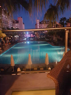 Blick von der Terrasse auf Pool...
